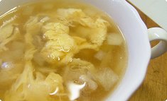 - Japanese: Tamago iri chikin-sūpu shōyu-aji